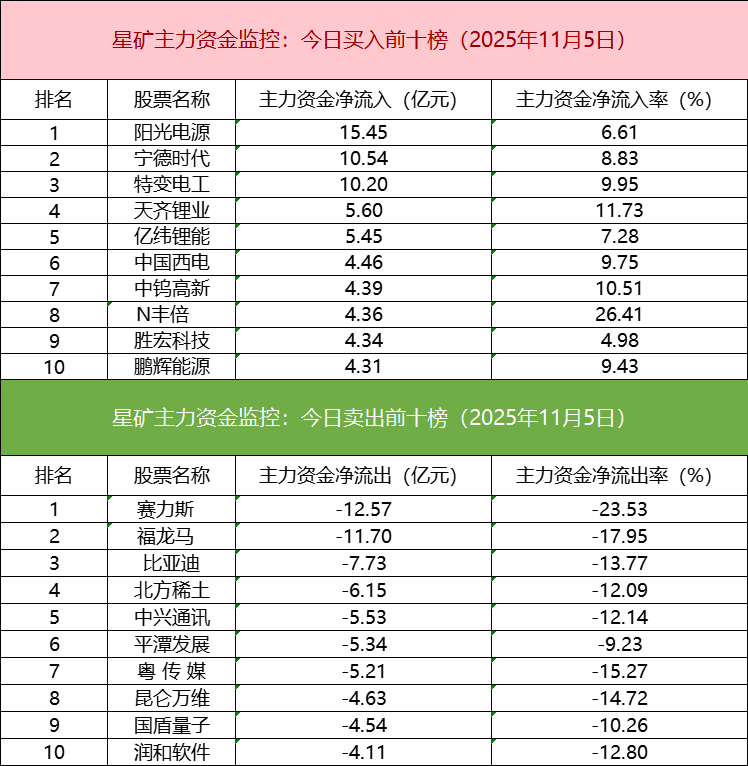 从个股主力资金监控数据来看,主力资金净流入前十的个股以储能方向为主,阳光电源净流入居首。