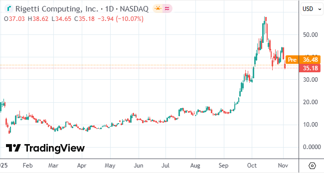 周一时,B. Riley 分析师Craig Ellis将Rigetti的评级下调至“中性”,理由是其“估值过高”,且担忧美国政府关门可能带来营收压力。但Ellis仍将目标价从35美元上调至42美元。