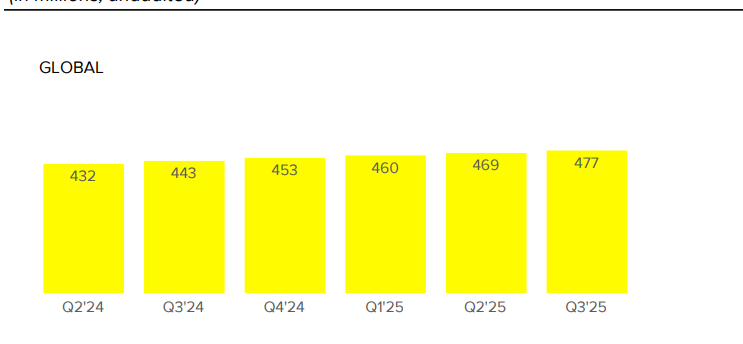 此外,公司报告显示,其全球日活跃用户数达到4.77亿,略高出预期的4.76亿,上一季度为4.69亿。