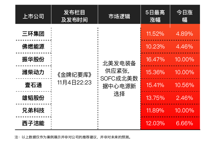 11月6日09:28《盘中宝》发文并引用分析师观点指出,AI电力需求大幅增长,SOFC具有广阔空间。文章提及壹石通,公司在11月6日拉升并大涨超10%。