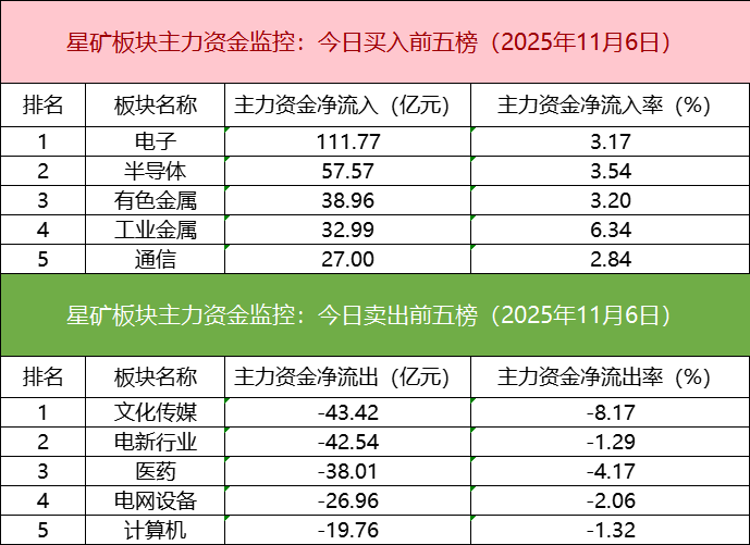 从主力板块资金监控数据来看,电子板块主力资金净流入居首。