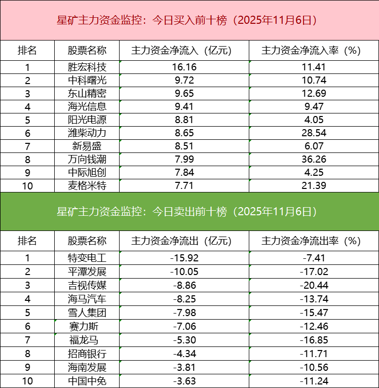 从个股主力资金监控数据来看,主力资金净流入前十的个股所属板块较为分散,胜宏科技净流入居首。