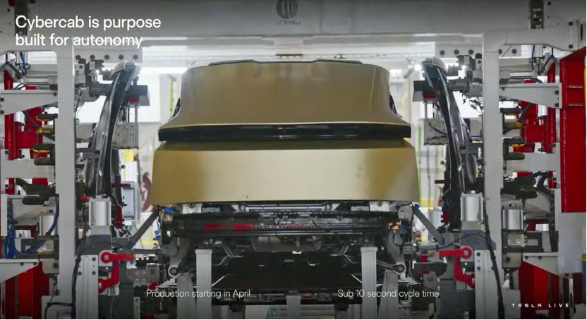 特斯拉赛博无人驾驶电动车Cybercab是首款专为无人驾驶设计的特斯拉Robotaxi运营车辆,无方向盘、无踏板、无后视镜,每公里运行只需几毛钱。马斯克称,该车将在2026年4月在得州超级工厂启动量产,目标是将Cybercab的下线时间缩短到10秒以内,理论上可以压缩到5秒,年产能将从50万台飙升至200万-500万台。