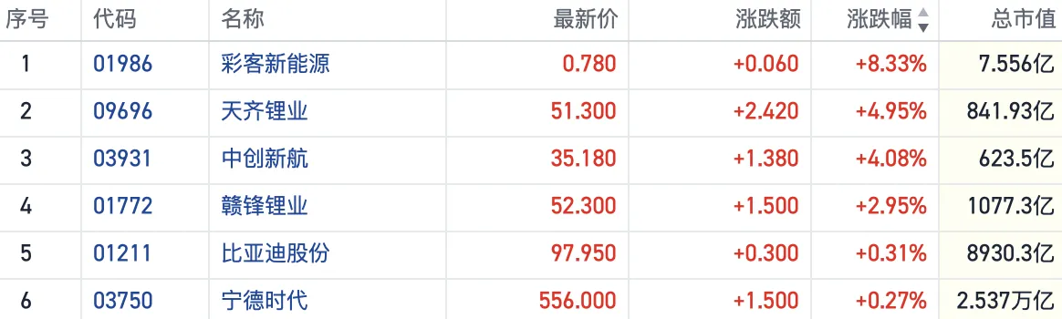 ①港股锂电股再度走强,哪些个股获资金关注?