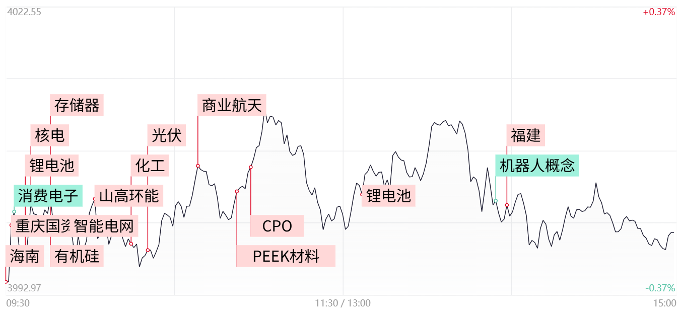 ①今日市场全天震荡走强,沪指放量涨近1%重回4000点,科技股方向集体回暖,半导体芯片涨幅居前,此外化工板块同样走强;