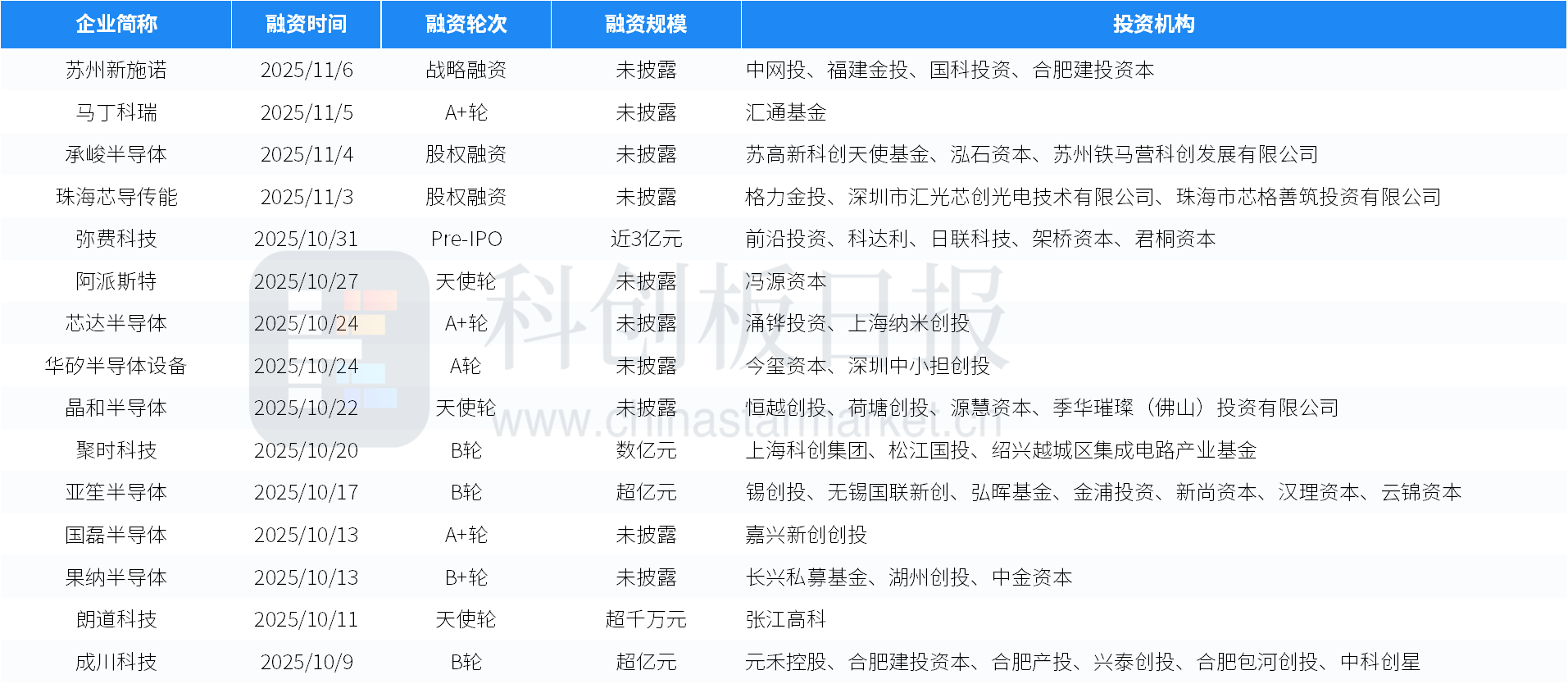 创投通数据显示,近一年来,国内半导体设备领域部分获投案例如下。
