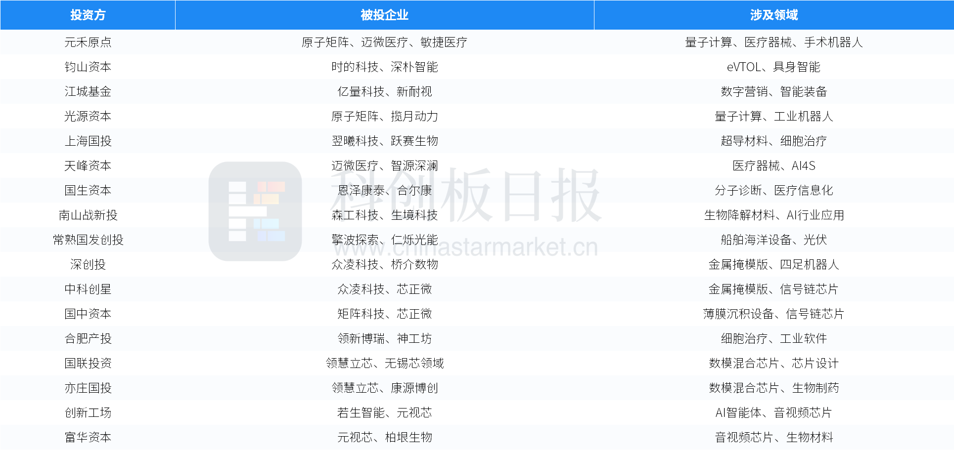 本周部分活跃投资方列举如下: