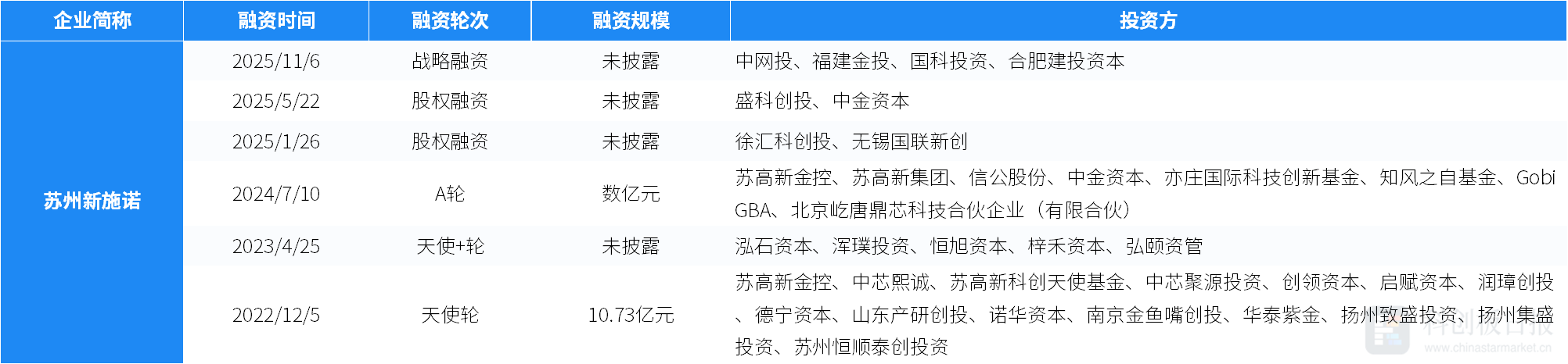 近日,新施诺宣布完成新一轮战略融资。本轮融资由合肥建投资本、中网投、国科投资、福建金投共同参与投资。
