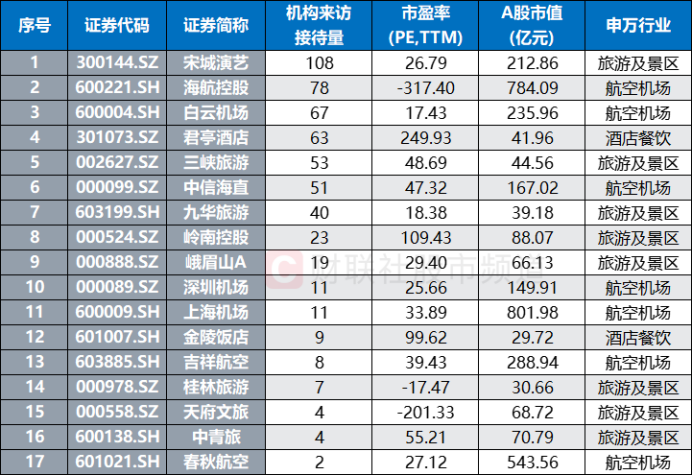 ③筛选旅游、酒店、出行相关标的,截至11月7日,共有17股年内获机构调研。