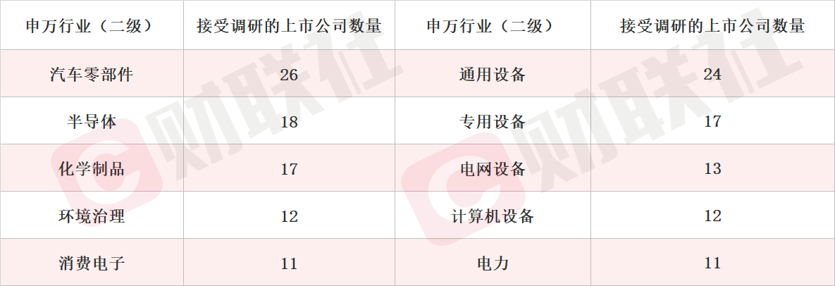细分领域看,汽车零部件、通用设备和半导体板块位列机构关注度前三名。此外,消费电子、电力等行业机构关注度提升。