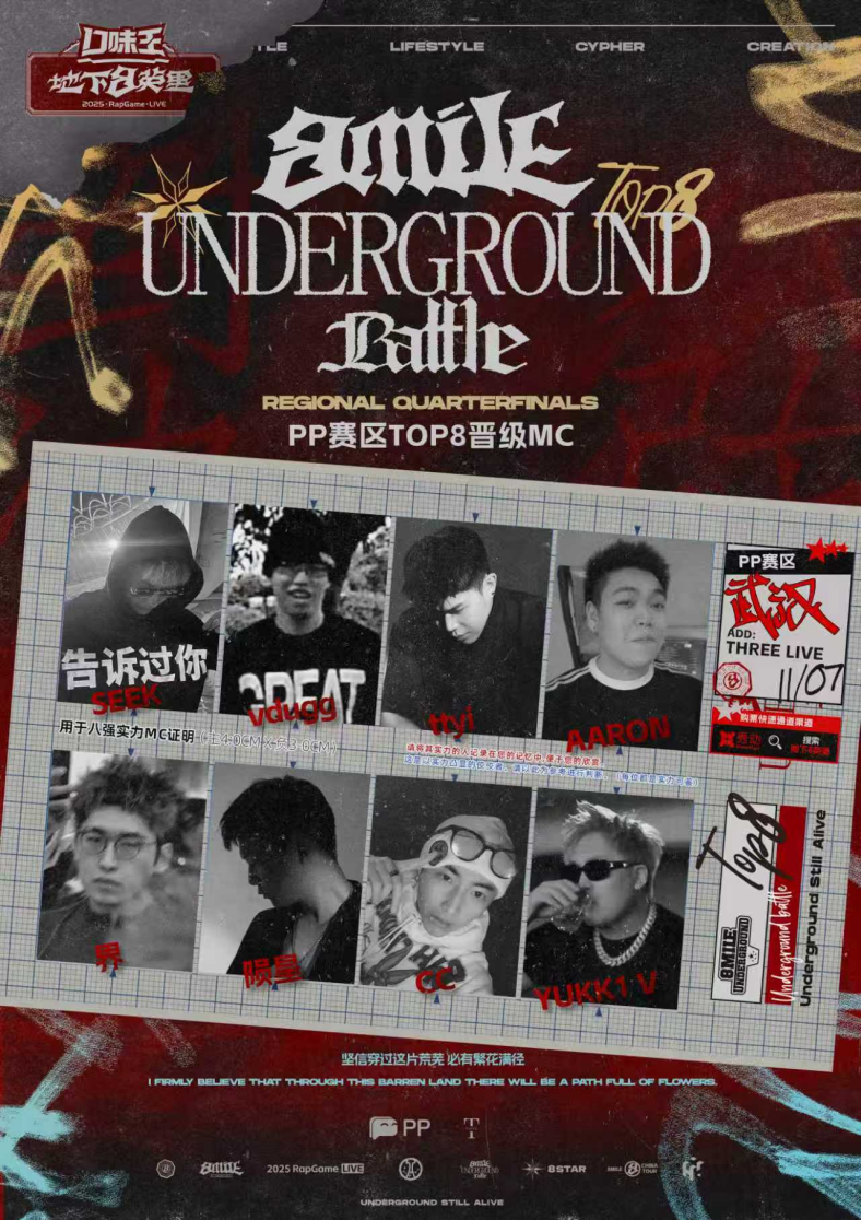 当晚,地下8英里PP赛区武汉城市赛正式打响,从线上赛“海选-晋级赛-八强争夺赛”考验中突围的8强选手,齐聚现场展开巅峰对决。这场聚集PP语音说唱实力歌手的专业赛事,最终CC强势拿下“武汉城市赛冠军”,并晋级地下8英里的全国总决赛。