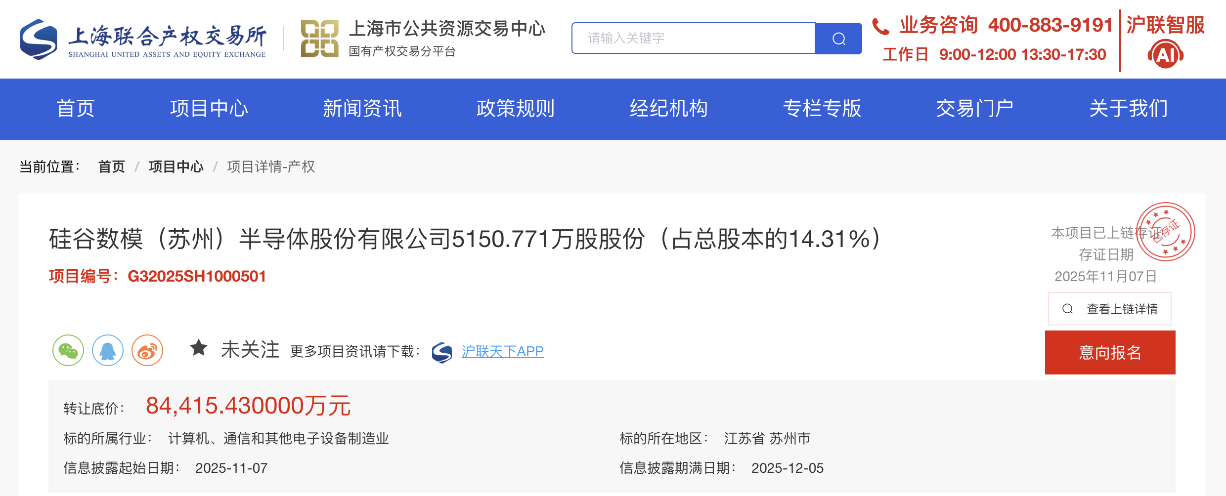 上海联合产权交易所网站显示硅数股份股权转让信息
