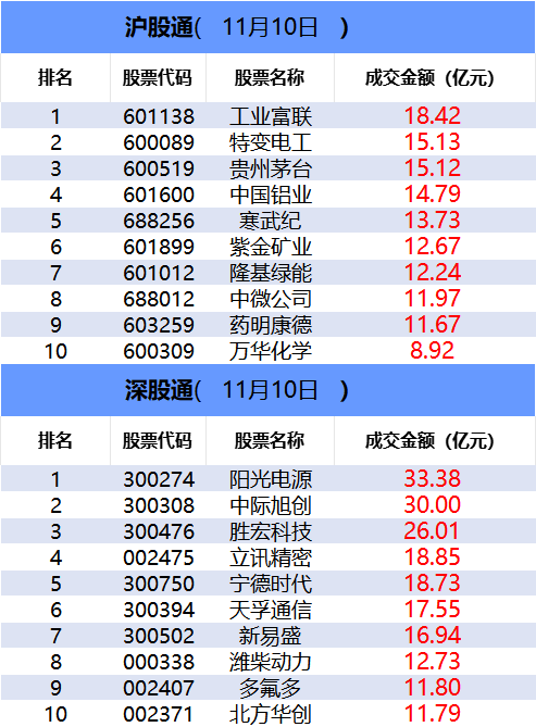 从深股通前十大成交个股来看,阳光电源位居首位;中际旭创和胜宏科技分居二、三位。
