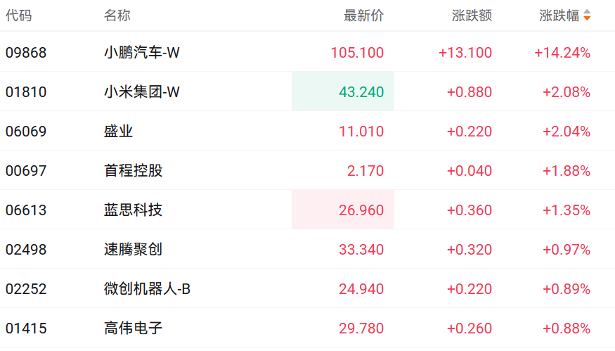 财联社11月11日讯(编辑 胡家荣)受益于市场对机器人的热度持续攀升,港股相关概念股持续走强。截至发稿,小鹏汽车-W(09868.HK)涨14.24%、小米集团-W(01810.HK)涨2.08%、盛业(06069.HK)涨2.04%。