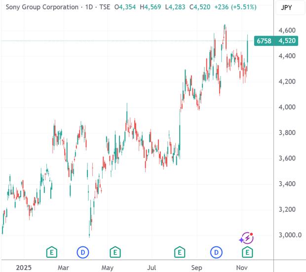 财联社11月11日讯(编辑 史正丞)基于半导体和影视业务的优异表现,索尼集团周二发布财报后股价拉涨5.51%,再度迫近历史新高。