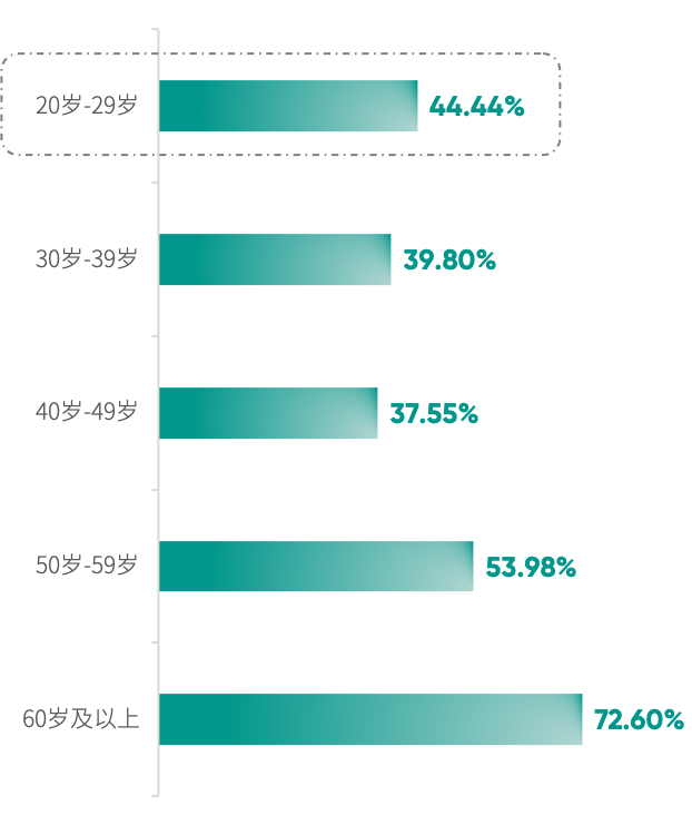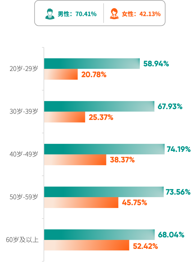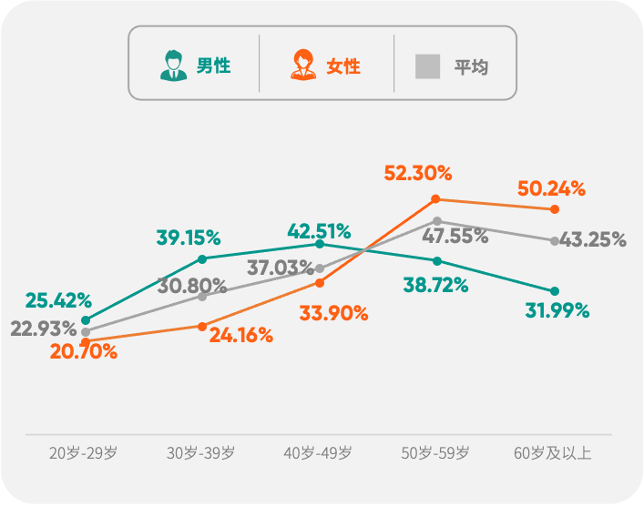 绿皮书显示,银行及保险高净值客户体重指数(BMI)增高检出率为52.87%,男性检出率超7成,并且在各个年龄段的检出率都高于女性,主打一个“稳重”。