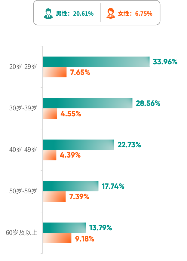 绿皮书显示,各个年龄段男性尿酸(UA)增高检出率均高于同年龄段女性。作为大家眼中的“老年病”,20岁-29岁男性银行及保险高净值客户的尿酸成绩单竟格外醒目,10个“00后”超过3个陷入“高尿酸危机”。任凭酒肉穿肠过,换来的却是这么“痛”的领悟。