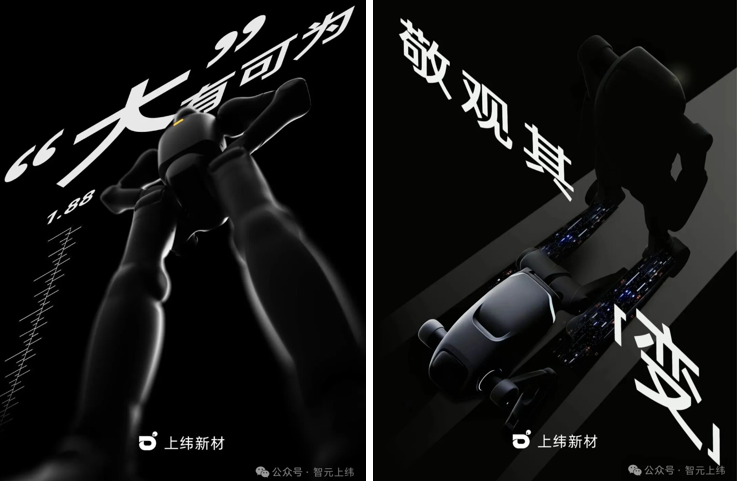 值得一提的是,今日名称为“智元上纬”的公众号已经上线,账号主体为“上纬新材料科技股份有限公司”,并发布了2张机器人概念产品预热海报。此前,智元恒岳要约收购上纬新材完成了股份交割,智元机器人联合创始人彭志辉担任上纬新材董事候选人。