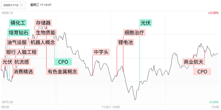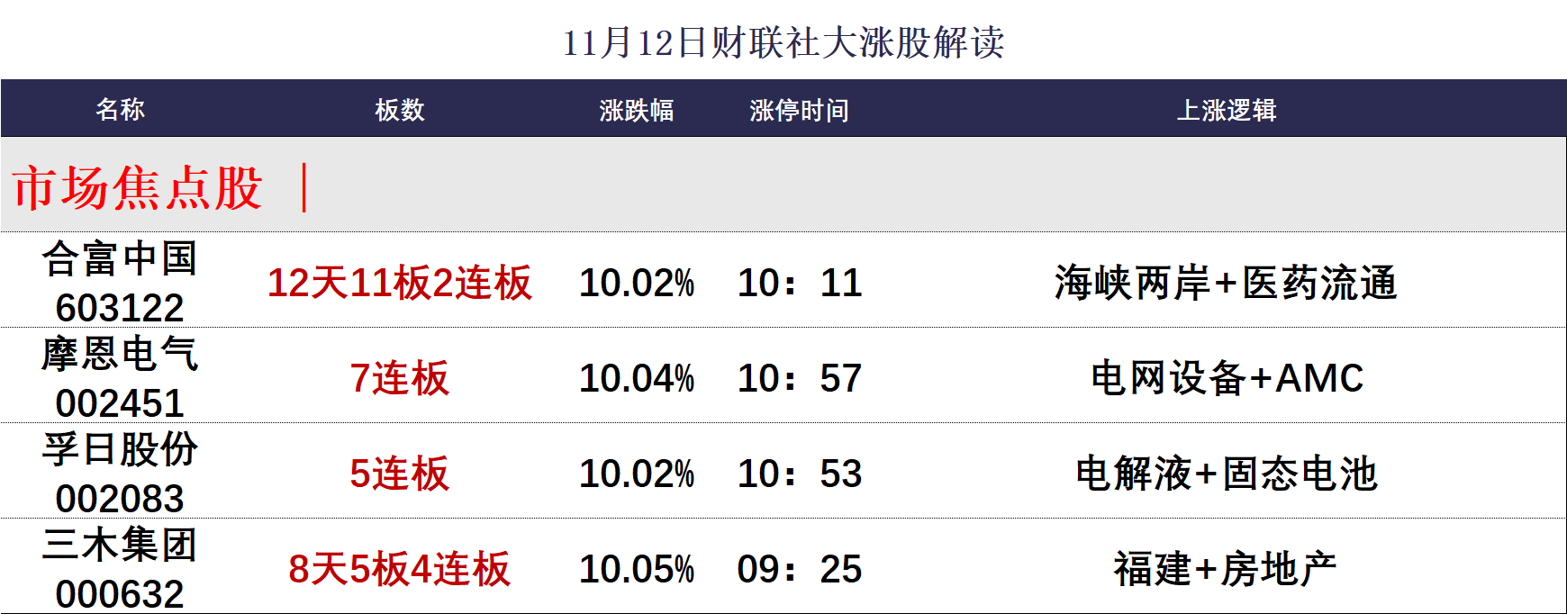 财联社11月12日讯,今日57股涨停,19股炸板,封板率为75%,摩恩电气7连板,孚日股份5连板,三木集团8天5板,东百集团6天4板,人民同泰、三元股份、浙江东日、国晟科技、中锐股份3连板,合富中国12天11板,安泰集团20天11板。市场探底回升,沪指微跌,创业板指尾盘一度翻红。沪深两市成交额1.95万亿,较上一个交易日缩量486亿。盘面上,市场热点快速轮动,全市场超3500只个股下跌。板块方面,保险、医药、油气等板块涨幅居前,培育钻石、光伏、可控核聚变等板块跌幅居前。截至收盘,沪指跌0.07%,深成指跌0.36%,创业板指跌0.39%。
