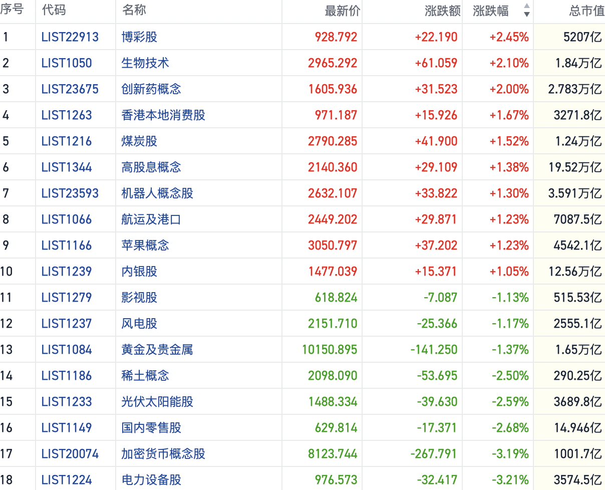 其他方向上,今日大盘蓝筹集体发力,银行、保险、石油股等权重表现活跃。此外,家电、医药、煤炭、餐饮、博彩股纷纷上扬。