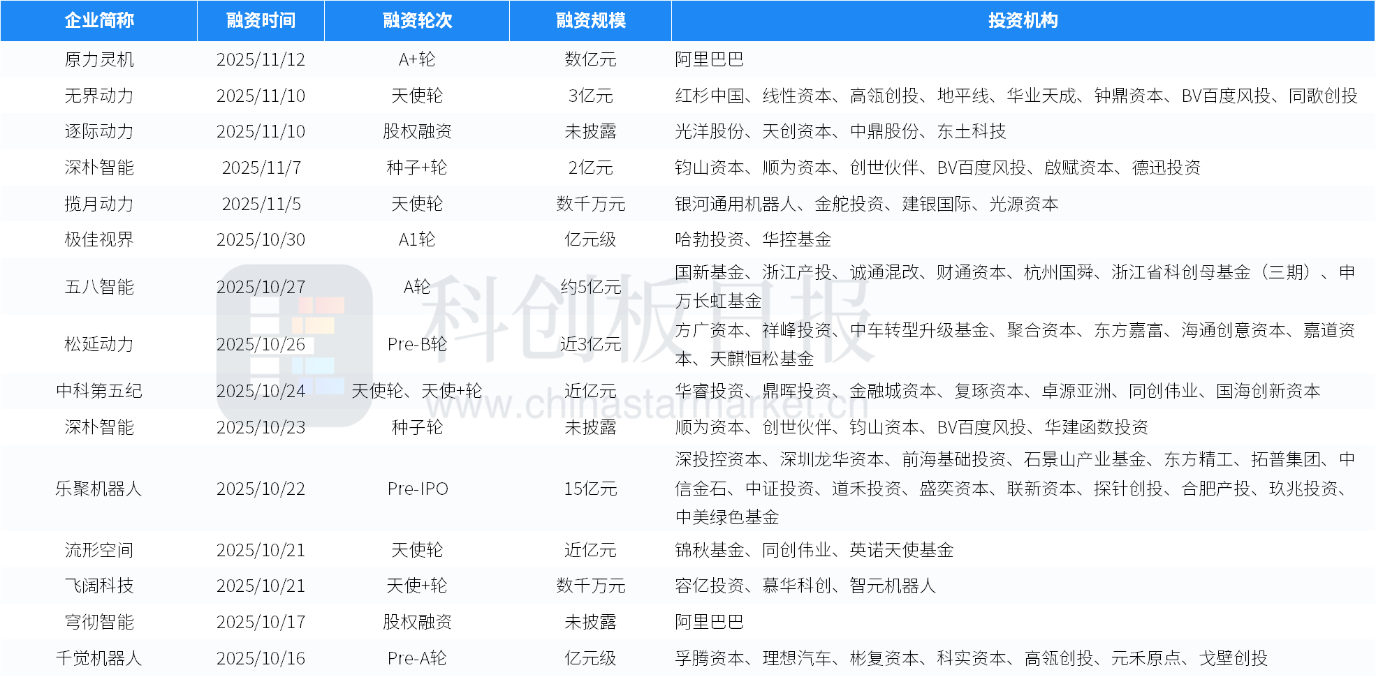 创投通数据显示,近一年来,国内具身智能领域部分获投案例如下。