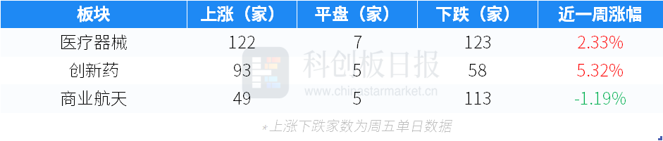 作为对比,本周医疗器械、创新药、商业航天二级市场表现如下表所示。