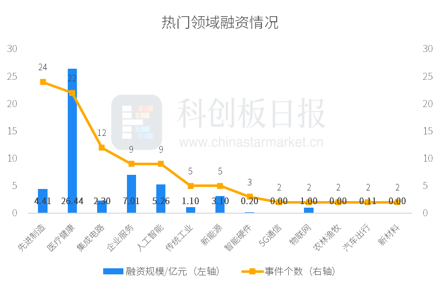 ②医疗健康、先进制造活跃度居前;汽车出行披露的融资总额最多,约28.54亿元。