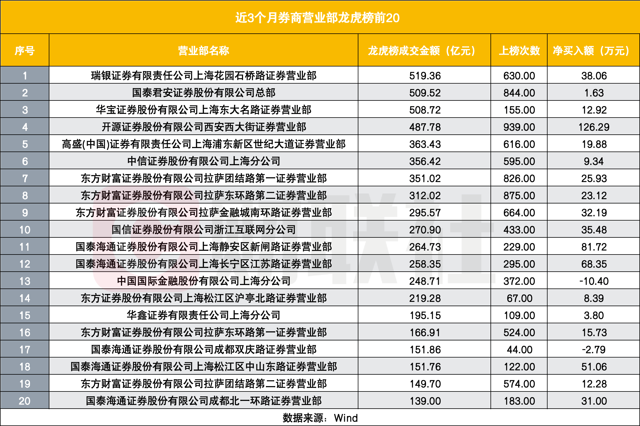 财联社记者根据券商营业部近半年、近三个月、近一个月龙虎榜前20榜单数据,发现这样四大趋势: