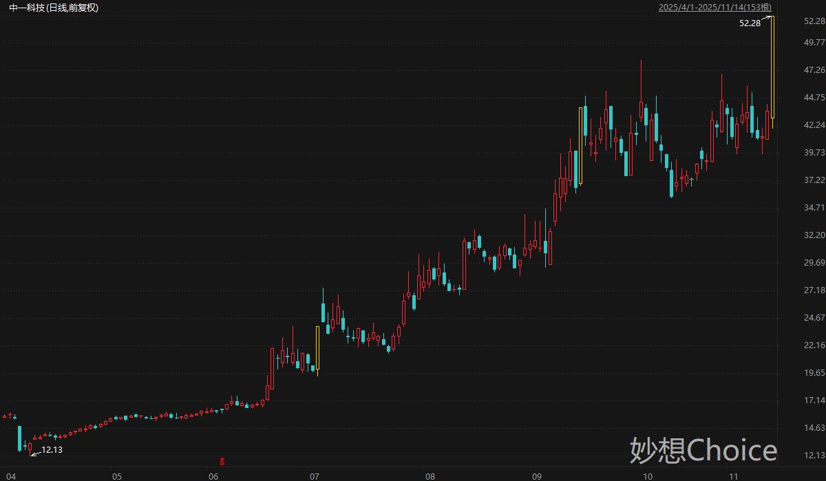 主营锂电铜箔和电子电路铜箔的中一科技周五斩获20CM涨停,最高触及52.28元/股,刷新历史新高,最新总市值122亿元。拉长时间来看,中一科技股价自4月低点迄今累计最大涨幅331%。中一科技10月23日在互动平台表示,公司关于固态电池产业发展方向已战略布局锂-铜金属一体化复合负极材料等相关技术,部分技术、工艺已经申请了发明专利,目前正在进行中试线设计等相关工作;同时公司成立了院士(专家)工作站,和客户协同重点推进一体化铜锂复合(自生成)负极材料的开发及产业化、智能复合集流体的开发及产业化,并根据市场需求情况开展相关产品的生产和销售。