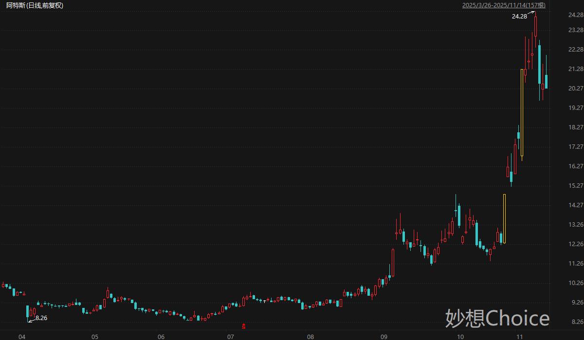 阿特斯2022年北美储能市占率9%,位列第五,境外收入占比82.28%,公司深耕高ROE海外大储市场,形成“储能系统+EPC+长期服务”的一体化商业模式。国金证券分析师姚遥等人10月31日研报认为,阿特斯大储业务布局北美、南美、澳洲、欧洲等高盈利市场,截至6月末在手订单金额为30亿美元(含长期服务合同),充足订单支撑储能业务放量;此外,公司北美出货领先,有望充分受益数据中心配储需求爆发。二级市场方面,阿特斯股价自4月低点迄今累计最大涨幅194%。