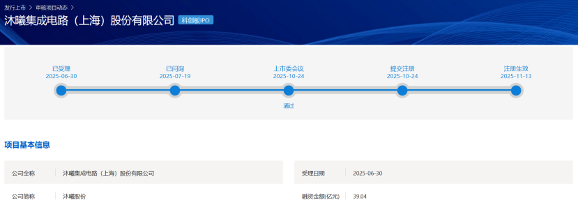 沐曦股份致力于自主研发全栈高性能GPU芯片及计算平台,公司IPO于2025年6月30日获得受理,当年7月19日进入问询阶段;2025年10月24日,公司上会获得通过,并于过会当日提交注册。