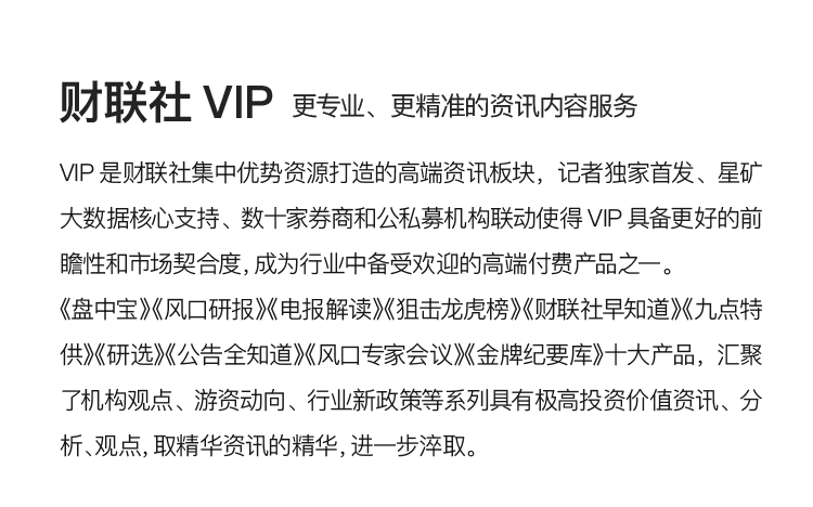 注:财联社VIP为内容资讯产品,并非投资建议。以下内容仅为资讯价值展示非对相关公司的推荐建议,非未来走势预测。投资有风险,入市需谨慎。