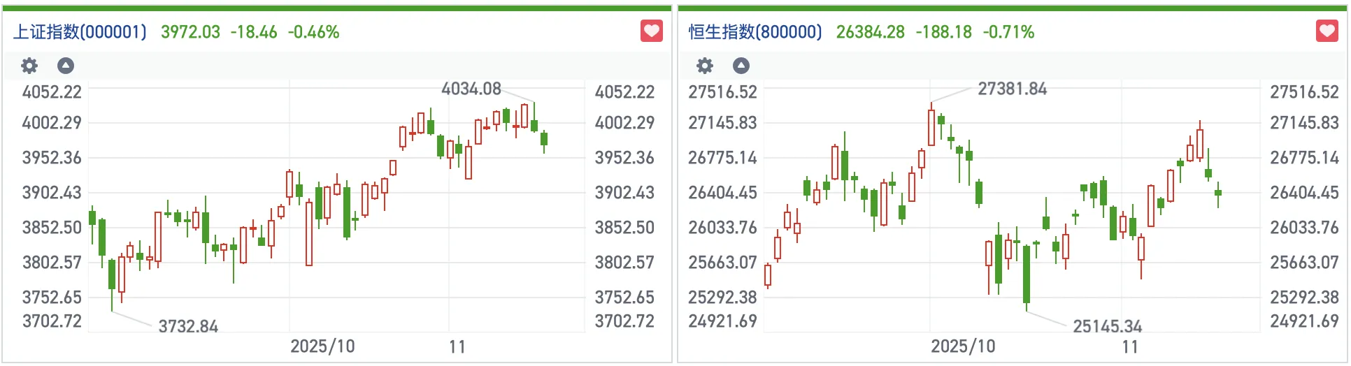 短线而言,港股调整压力持续释放。市场一方面投机炒作氛围持续活跃,另一方面则倾向于高低切换,部分目光已开始着眼跨年行情。