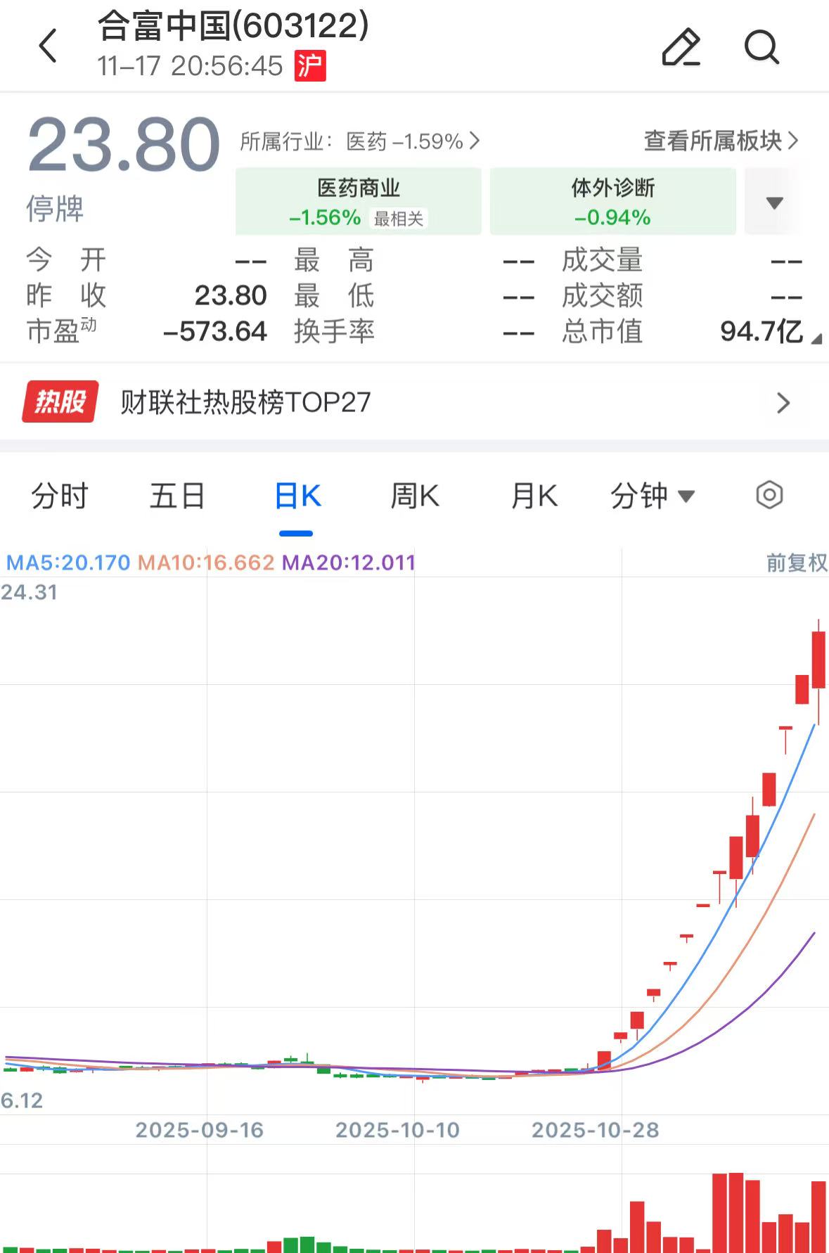 ①合富中国因股价异常波动于11月17日起停牌核查,预计不超过3个交易日。