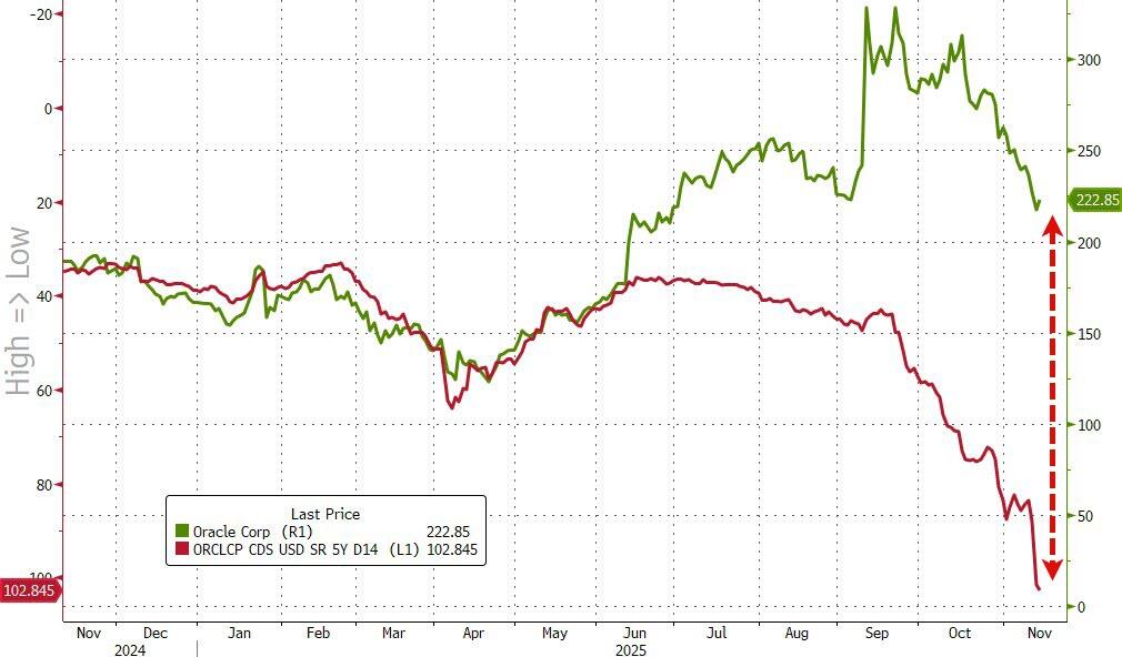 注:绿线为甲骨文股价,红线为甲骨文CDS