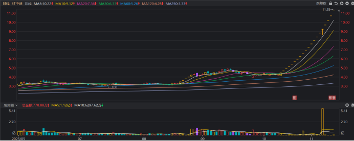 注:ST中迪近期连续涨停(截至11月18日收盘)