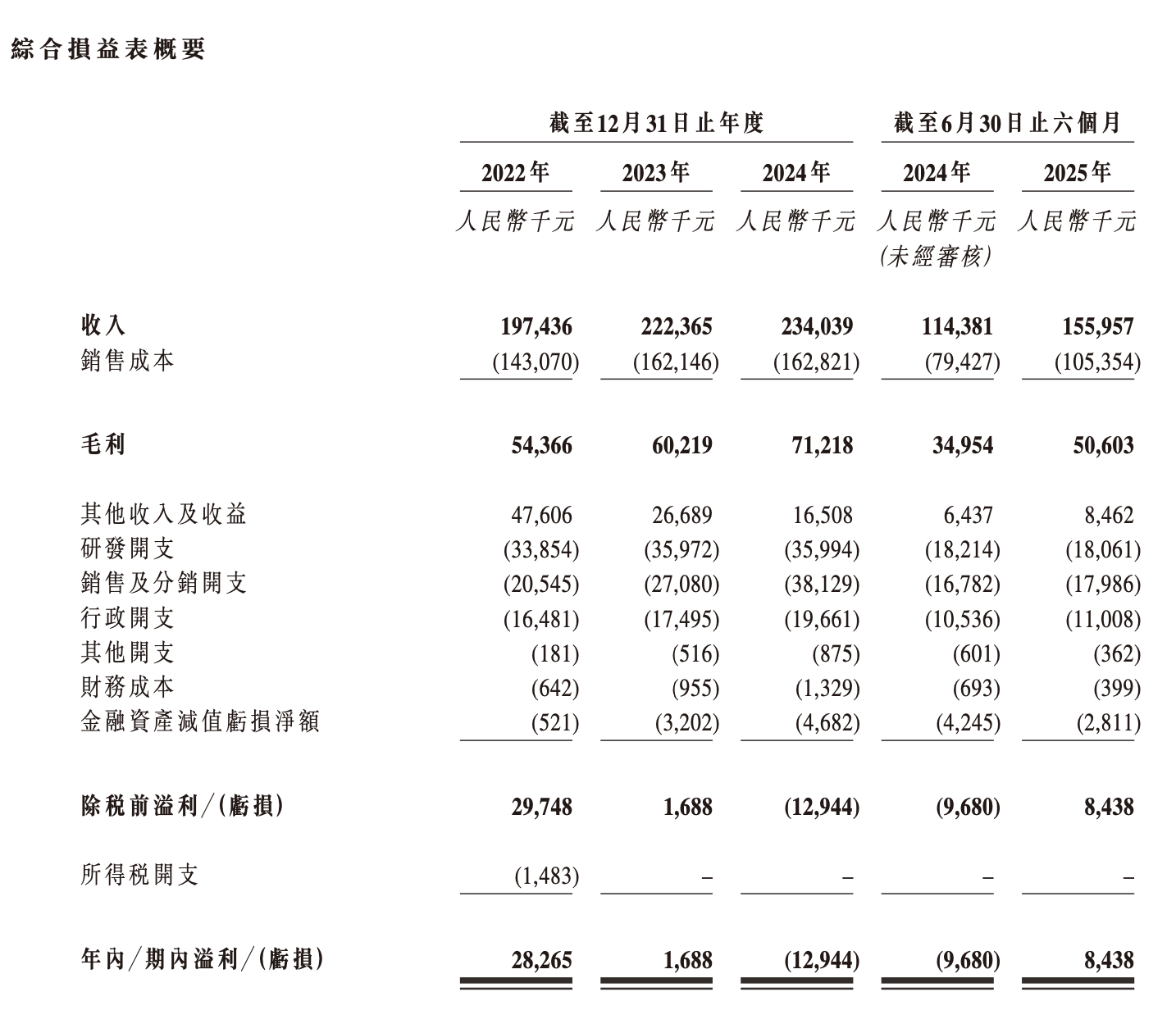 业绩方面,招股书显示,2022年度至2024年度及2025上半年,卡诺普分别实现营收1.97亿元、2.22亿元、2.34亿元、1.56亿元;毛利率分别为27.5%、27.1%、30.4%、32.4%。同期的研发投入分别为3390万元、3600万元、3600万元、1806万元,占同期营收比例分别为17.1%、16.2%、15.4%、15.9%、11.6%。