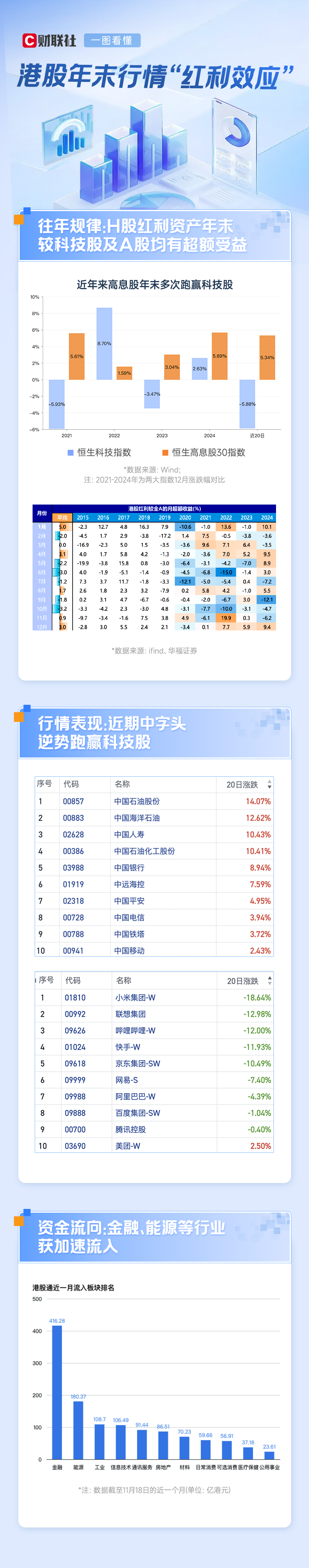 11月以来港股行情风格切换,蓝筹权重板块关注度持续走高。而从历史数据来看,年末行情港股红利资产也存在规律性的超额收益,值得投资者留意。