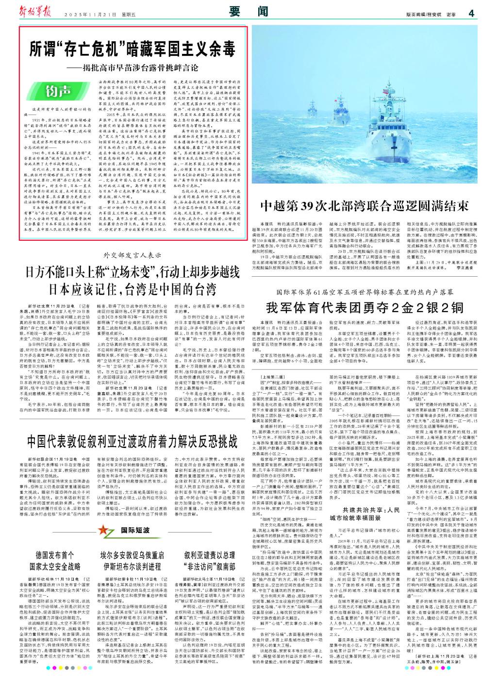 ①日本首相高市早苗将“台湾有事”与“存亡危机事态”挂钩,暴露了日本军国主义余毒未消的本质;