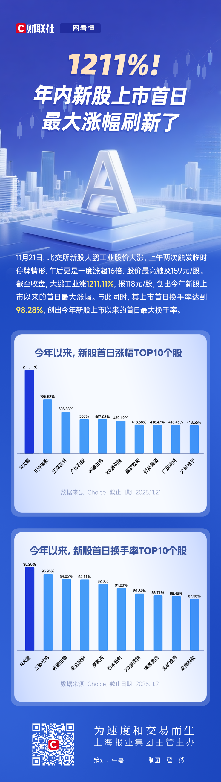 一图看懂 | 1211%,年内新股上市首日最大涨幅刷新了