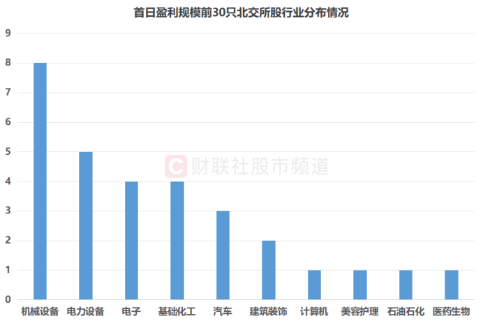 注:首日单签盈利规模前30只北交所股行业分布情况(截至11月21日收盘)