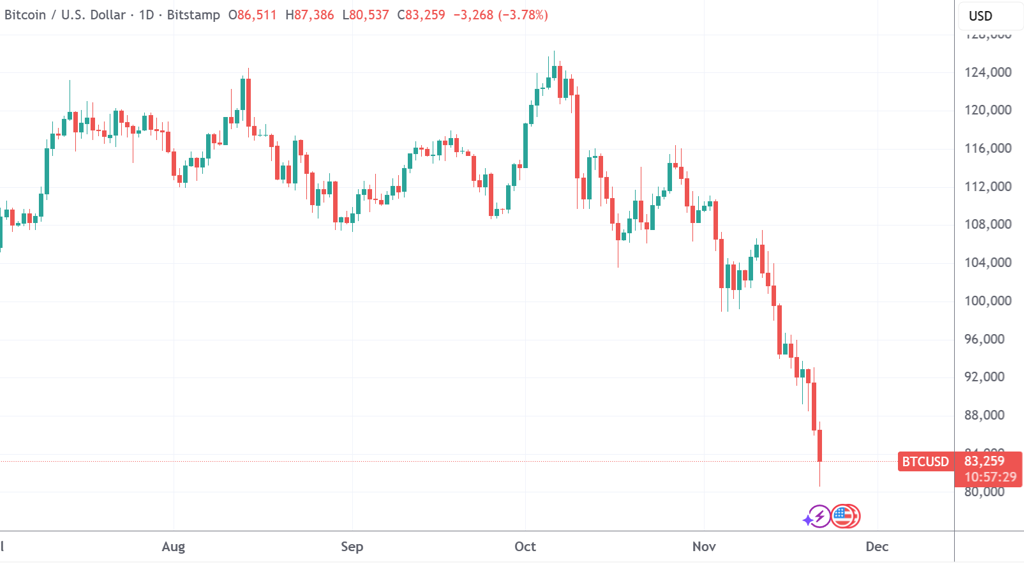 另外,币圈的持续下跌也在影响市场情绪。截至发稿,比特币价格日内跌幅仍超过3%,目前位于4月初以来的低点。同时比特币在11月跌幅已经超过20%,是自2022年6月以来的最大单月跌幅。