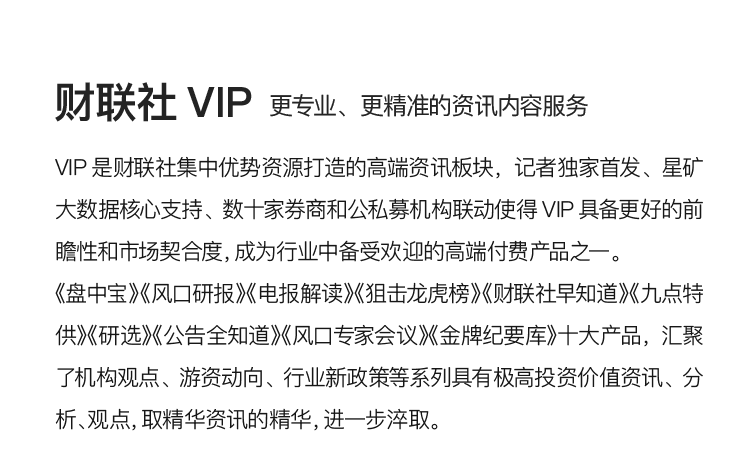 注:财联社VIP为内容资讯产品,并非投资建议。以下内容仅为资讯价值展示非对相关公司的推荐建议,非未来走势预测。投资有风险,入市需谨慎。