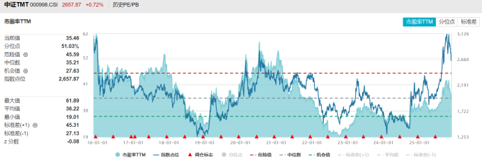 从估值层面来看,目前,中证TMT指数市盈率35.46倍,处于近十年51.03%分位点;市净率3.48倍,处于近十年59.34%分位点。按具体板块统计,电子、通信、计算机、传媒板块(申万一级)目前市盈率分别为59.35倍、85.47倍、40.66倍、43.84倍,各处于近十年82.51%、95.02%、60.7%、74.75%分位点。