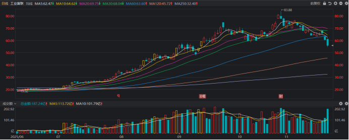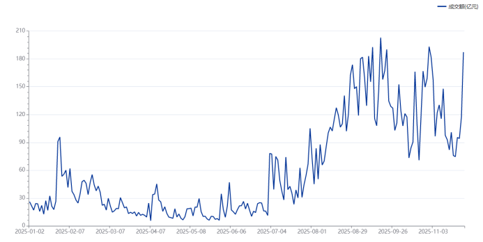 从成交额数据上看,工业富联今日明显放量,全天成交额达187.24亿元,较上一交易日增长近70亿元。同时,工业富联今日成交额也为上市以来的第五高峰值数据,仅次于今年9月18日(202.92亿元)、10月30日(193.15亿元)、9月12日(192.69亿元)、9月23日(190.21亿元),彼时,其单日涨跌幅分别为+5.3%、-3.5%、+4.8%、+0.5%。