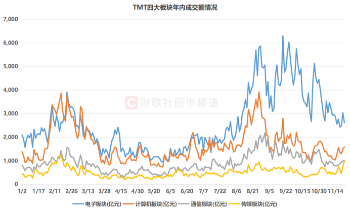 注:TMT四大板块年内成交额情况(截至11月24日收盘)