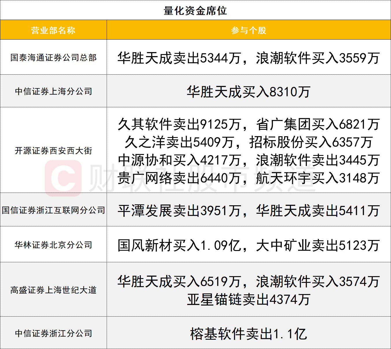 量化资金活跃度较高,榕基软件遭中信证券浙江分公司席位卖出1.1亿。国风新材今日涨停,获华林证券北京分公司席位买入1.09亿。