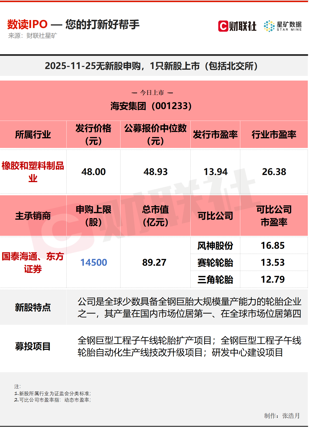 【数读IPO】今日1只新股上市,公司为轮胎行业细分龙头