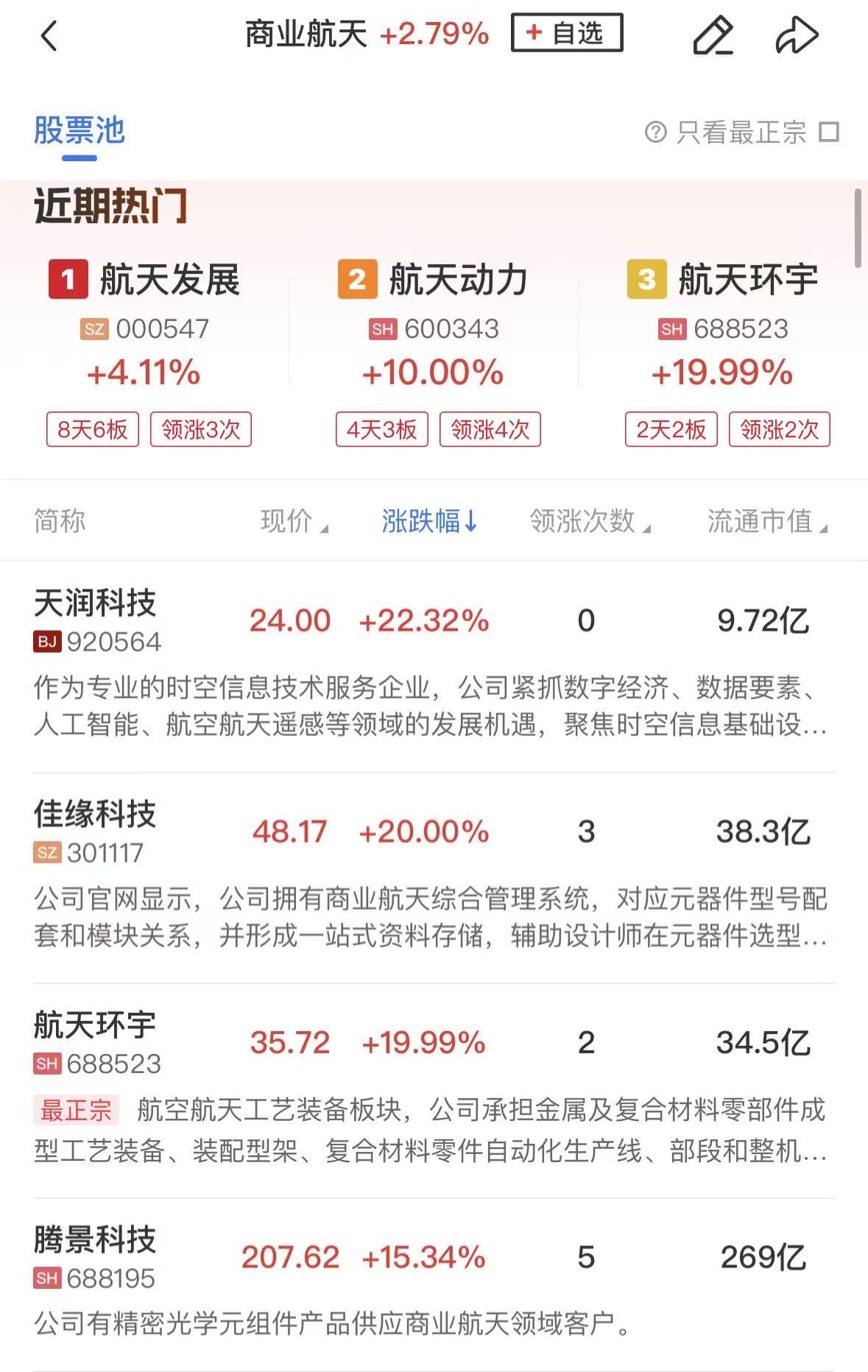 商业航天临近午间收盘再度异动,航天环宇20cm2连板,上海港湾再度涨停,再创历史新高,超捷股份、新雷能、天银机电、星图测控、乾照光电、上海沪工等跟涨。