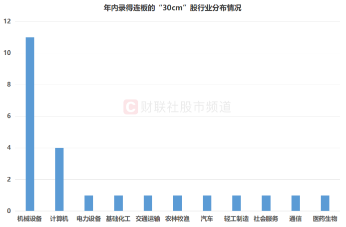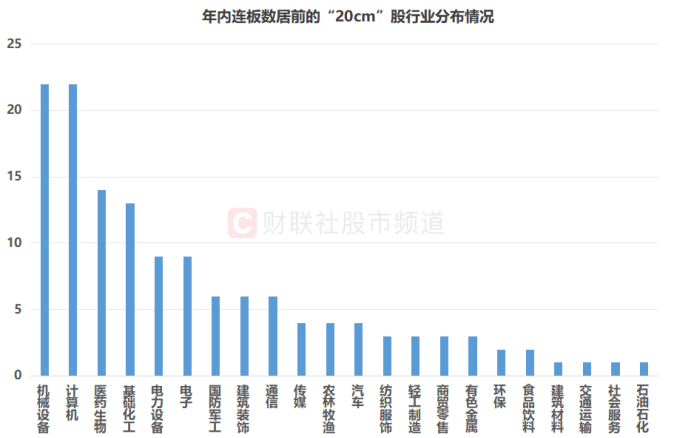 注:年内录得连板的“20cm”股行业分布情况(截至11月25日收盘)